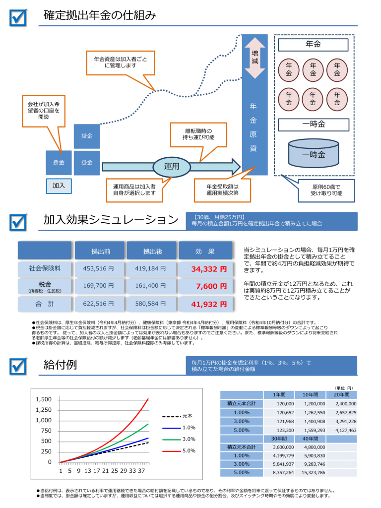 確定拠出年金の仕組みや加入効果、給付例については画像にまとめましたのでご覧ください。